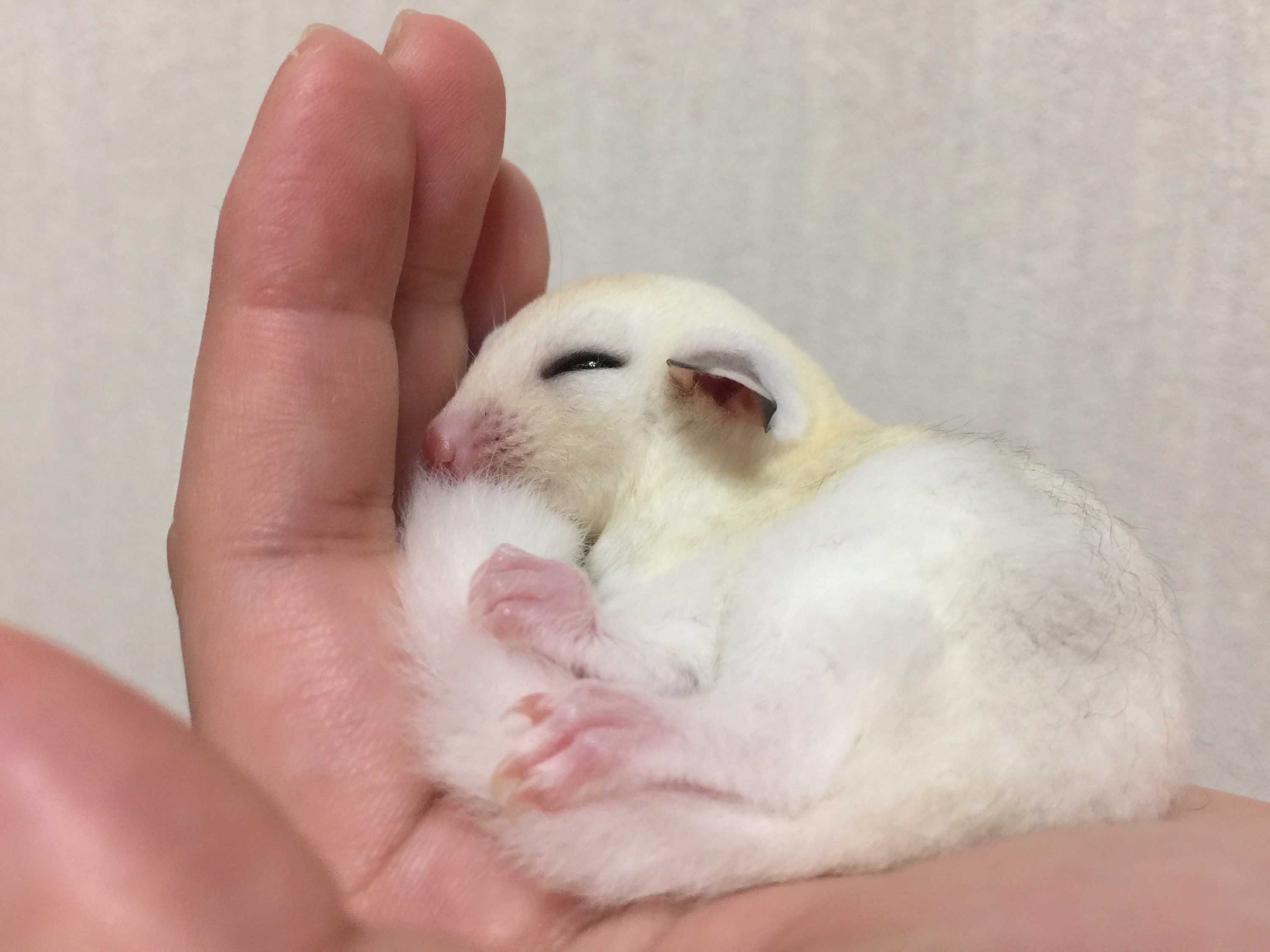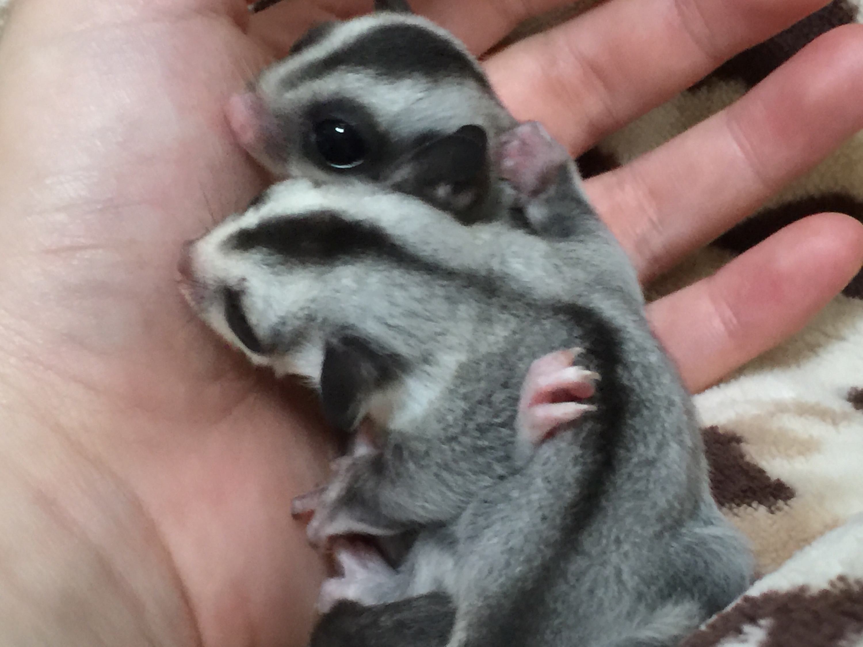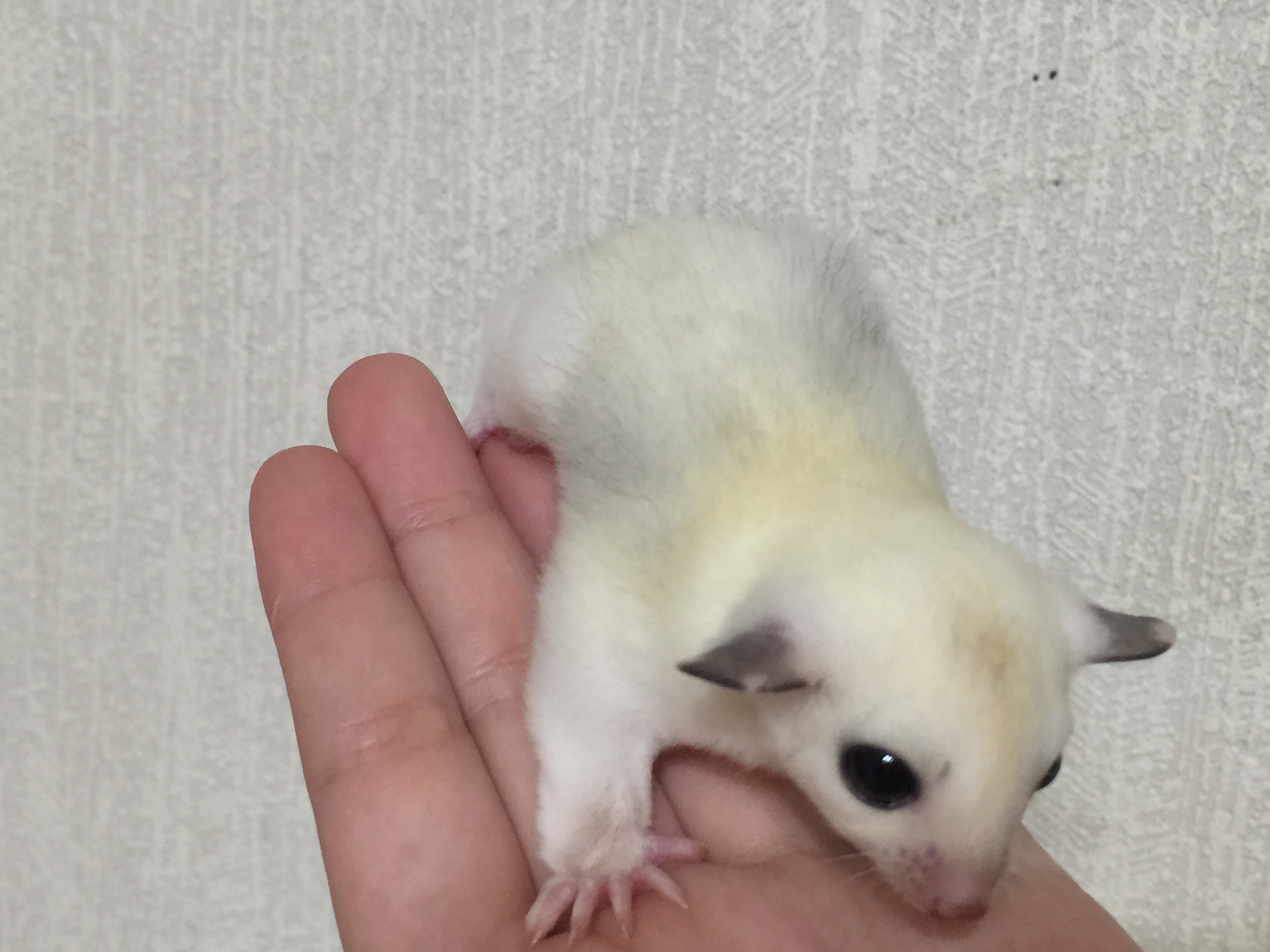 フクロモモンガのモザイクベビー、脱嚢から12日で目が開きました。